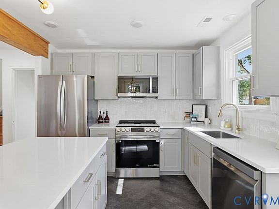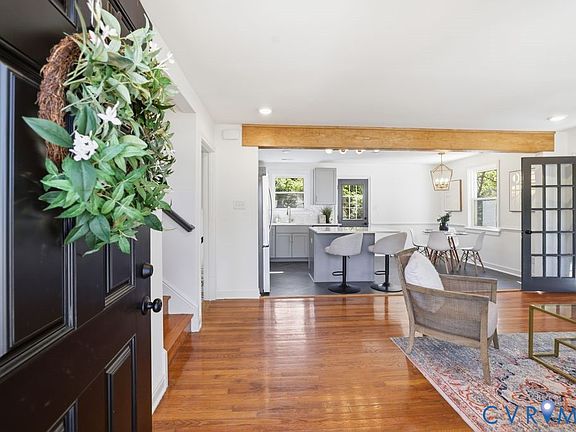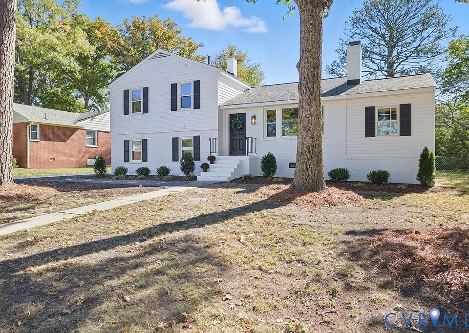 Welcome to 2111 Manlyn Rd. in Roxbury, one of Richmond’s most sought after West End neighborhoods! This fully remodeled tri-level blends modern updates with timeless vintage charm. Step inside and you’ll immediately notice the show stopping stained wood beam that sets the tone for the home’s stylish character. The main level features an open layout with a brand new kitchen from the floors up: sleek cabinets, quartz countertops, tile backsplash, a center island, new flooring, and stainless appliances. Adjacent are a dining area and a cozy living room with original hardwood floors and a brick woodburning fireplace, plus an incredible office space featuring color drenched walls and trim in Sherwin Williams Urbane Bronze, paired with a custom stained wood shiplap ceiling - sophisticated, and full of personality. Upstairs, you’ll find three comfortable bedrooms with hardwoods and a full hall bath with a new vanity, beadboard detail, preserved vintage tile floors and bonus hidden storage behind the vanity mirrors. The lower level offers a huge rec room or second living space, along with a fourth bedroom featuring an ensuite full bath with a new walk in tiled shower and new vanity, and a separate laundry nook with hookups for a stackable washer and dryer. Notable updates include fresh interior and exterior paint, new lighting and hardware throughout, all new flooring on the lower level, brand-new HVAC and water heater (2025), new exterior doors on the main level, a newly paved driveway, gravel walkway and back patio, and refreshed landscaping. The large fenced backyard is the perfect spot for pets, play or entertaining. With all the heavy lifting done, this home is move in ready and ready to enjoy! Conveniently located near interstates, schools, shopping, dining, and local hospitals - this one checks all the boxes for West End living at its best!