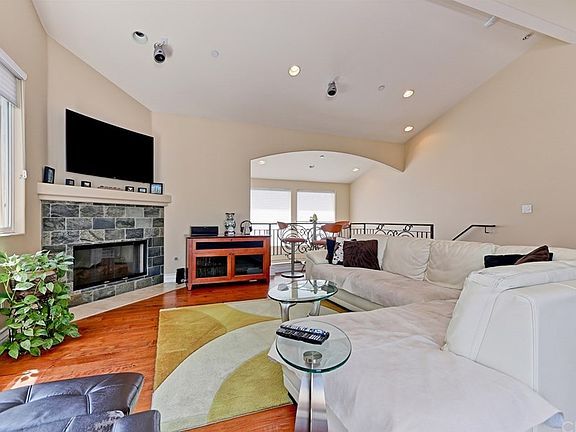 Striking contemporary front unit with loads of style! Second floor features soaring vaulted ceilings, an open entertaining area with lovely dining room, fireplace, oversized windows and spacious deck - and the master suite! Bottom floor has 2 bedrooms, hall bath as well as laundry area and direct access from the garage. Gated and fenced front yard plus a very private upper deck makes this townhouse feel like a single family!
