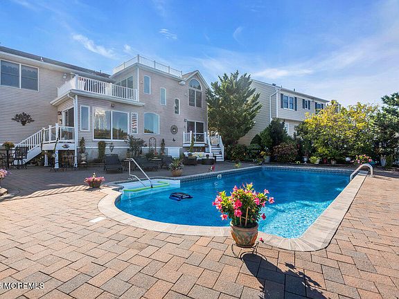 Stunning in design, this custom 4,000+ sq ft Laguna Village home offers the ultimate Point Pleasant lifestyle. This home must be seen to appreciate all it has to offer. Set on an oversized 146' deep lot with 60' of vinyl bulkhead, a private dock with water & electric, & a heated saltwater pool, this is the pinnacle of coastal living. The open-concept layout is perfect for entertaining, featuring a vaulted kitchen, dining area, & a spacious great room w/ fireplace that opens to a bright sitting room overlooking the yard. The 1st floor also includes a junior suite, 3 additional bedrooms, a full bath, half bath, laundry, & a spa room with hot tub. Upstairs, enjoy panoramic water views from a large family room w electric fireplace, a spacious primary suite with sitting area, massive walk-in closet, & en suite bath, plus a flex room and another half bath. Outdoors, relax by the fire pit, lounge on the custom paver patio, or take in the views from the upper deck surrounded by lush mature landscaping. Elevated high and dry post-Sandy to exceed FEMA standards. Two-car garage with direct entry. Located on the "T" of a deep-water lagoon with the option to join Bay Head Shores beach club, this is the total package for year-round coastal luxury.