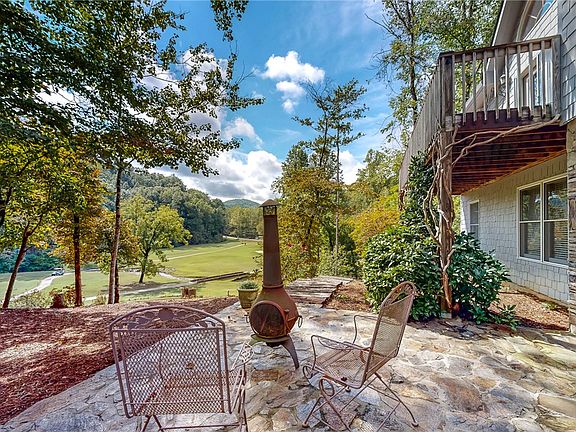 Outdoor living takes center stage with a stone terrace, covered porch, two decks, and a screened porch, all surrounded by lush greenery and fairway views. A large stream runs along the edge of the land, offering year-round sounds of flowing water—a tranquil backdrop for evenings on the porch or mornings with coffee in hand. Enjoy the privacy of a dead-end road, abundant storage, and a layout designed for both relaxation and recreation.