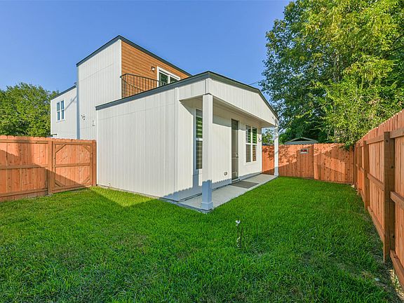Step into unparalleled elegance. This striking 2300 SF new construction home boasts a modern vertical siding facade. The 8Ft carriage garage fits trucks/SUVs & includes a dedicated EV charger. Inside, discover an open-concept layout with stunning sky-view from every room. 4 dusk-to-dawn motion sensor lights, Stained-cedar wood fence & 5 exterior electrical outlets complete the thoughtful exterior design. Inside, discover an open-concept layout with stunning skyview from every room. Water-resistant vinyl flooring & hardwood 6-panel doors create a contemporary feel. The chef's kitchen shines with 42 cabinets, Quartz island, 2 pull-out trash cans, LG stainless appliances, and a convenient Butler’s Pantry. Enjoy lifestyle amenities including a wet bar, ceiling speakers, dedicated office home, pet room, & a versatile lifestyle room. Zebra blinds adorn windows. 2 bedrooms offer balcony access. Relax on the first-floor rear porch. Modern luxury awaits!