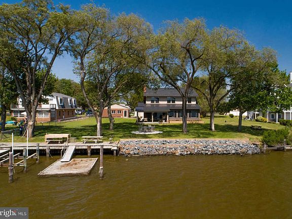 Professionally designed Craftsman home constructed in 2019 on a prime, deep .73 acre waterfront lot on Bodkin's Main Creek. 100' of shoreline with deep water pier. Panoramic Main Creek views yet protected body of water. Guest house complete with open and spacious kitchen & living room, bedroom, full bath and washer/dryer, approx 690 sf. Main home has beautifully proportioned rooms with classic details, including Craftsman moldings, solid 3 panel doors, and window trim throughout. Every space thoughtfully designed including waterfront family room with wide plank hardwood floors, wood burning fireplace open to gorgeous kitchen with white cabinetry, black granite & black stainless appliances. Dining room off kitchen and living space offers open layout, yet the possibility of intimate dining with wide plank hardwood floors. 8' sliding doors in family room lead to 18'9x18'8 covered porch with vaulted ceiling overlooking large waterfront yard, a perfect spot to enjoy the outdoors. Main level waterfront master bedroom with private full bath and walk-in closet has sliders to waterfront sunroom to maximize views. Sunroom is also accessible from the family room and is the perfect place to enjoy the waterfront in all seasons with 3 walls of windows, vaulted ceiling & ceiling fans. Upper level offers 2 additional waterfront bedrooms, and a waterfront office all with spectacular views of Bodkin's Main Creek. Large bonus room offers flexible space and significant interior storage. Marvin doors and windows throughout. The waterfront has a reconstructed bulkhead and rip rap (2017 & 2019), private pier with 8' ML depth, 10k lb lift, floating pier and deck at water's edge. Large circular patio close to the shoreline is the perfect spot to enjoy the catch of the day! Paved driveway with ample parking for family or entertaining. 12'x20' shed new in 2020. Guest house updates include: windows 2018, Mitsubishi split HVAC unit, roof, siding and skylights all new 2020. If you're looking to move in with not a thing to do but enjoy one of the prettiest waterfront locations, this property is a must see! Guest house has waterfront views and would serve guests, family or friends well!