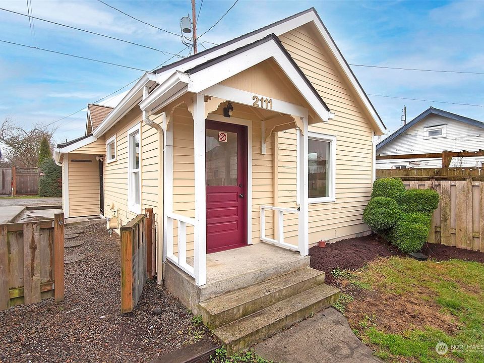 Charming bungalow bursting with sweet surprises. Forget thin walls where you can hear everything your neighbor is doing! Nestled on a peaceful street, this home offers a private haven with legally deeded off-street 2 car parking concrete pad on north side of house. Step inside to a sun-drenched living room, perfect for movie nights & an area that could easily be a reading nook or dedicated dining room space. The sparkling new kitchen boasts a breakfast bar for casual mornings & 2 bedrooms await, tucked away for sweet dreams. Full tub bathroom. Beyond your doorstep, parks, shops, & restaurants beckon. But the real gem? Your own private yard, goes all the way to sidewalk in front. Ditch the condo squeeze! Virtual staging used. Welcome home!