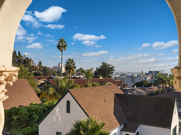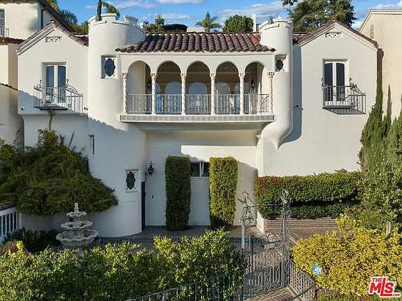 One of the most iconic homes in Hollywood Heights: Old Hollywood in its most pure form, exuding sophistication of a bygone era can be found at this 1924 Moorish castle in this historic enclave of the Hollywood Hills. With stylistic influences from Serge Roche including original white interior plaster, endless details such as original plaster sconces, cove recessed lighting, original wood paneling in the dining room, as well as inset aged mirror details. Just around the corner from the iconic High Tower and moments from the Hollywood Bowl, this gracefully restored home is rich in character and enchanting outdoor spaces all with incredible panoramic views. The main living space features a light-filled living room with southern city views and a gorgeous wood-paneled dining room with original cabinetry. Two bedrooms with walk-in closets and a spacious bathroom make up the top level. Downstairs is a bonus bedroom/office and bathroom. Enjoy the outdoors and entertain in the private rear garden with an original waterfall fountain, or in the magical lower level terrace. Centrally located and close to many of the area's best restaurants and nightlife. Previously owned for nearly 60 years by legendary actor Morgan Woodward, and prior to that for 50 years by the New York Socialite it was originally commissioned for. This is the true LA experience that is highly sought-after, but so hard to find.