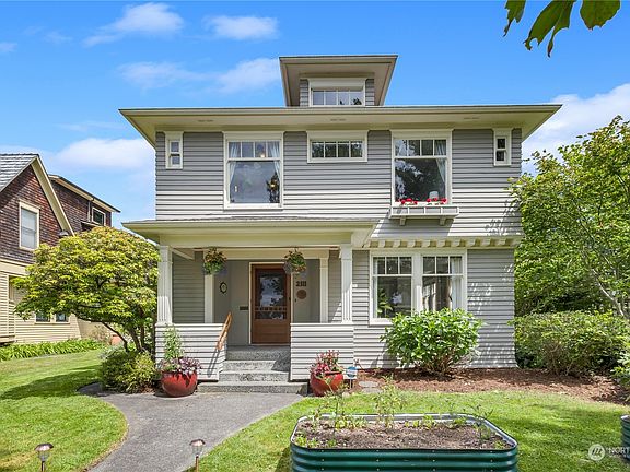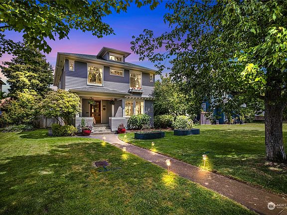 Blending old-world charm with modern updates, this sun-bathed, spacious historic home on Rucker features a grand-welcoming entry with open banister stairway! French doors lead to living room w/gas fireplace & built-in cabinets. Kitchen is equipped with SS appliances, custom Maple cabinetry, cozy eating nook & potbelly wood stove. The primary retreat offers partial bay view, walk-in closet & 3/4 bath. 3 additional bedrooms, a full bath, & washer/dryer also upstairs. The unfinished basement provides ample storage. Enjoy a fenced, gated backyard w/ 2-car garage & shop space on a extra-large lot. This pre-inspected home is close to Grand Ave Park and offers easy access to the waterfront. Size, space, view, updates & beauty-this home has it all!