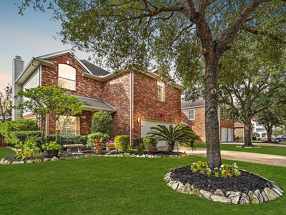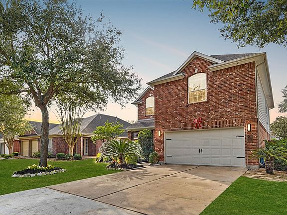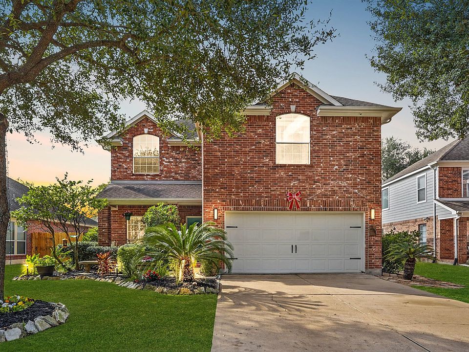 Welcome to 2111 Sherbrook Park Lane! This well-maintained former model home offers strong curb appeal and over 2,600 sqft of living space. Located on a quiet cul-de-sac near I-10 and zoned to top-rated Katy ISD. The home features 3 bedrooms, 2.5 updated baths, a large 2-car garage, a downstairs flex room, and an upstairs bonus room. The living room is anchored by a striking mosaic-tile fireplace and opens to the kitchen for seamless flow. The dining area sits conveniently just off the kitchen, while the wide, functional kitchen includes an island, stainless steel appliances, and a walk-in pantry providing exceptional storage. No carpet upstairs—hardwood laminate throughout the entire second floor. The serene primary bedroom includes a farmhouse-style barn door, updated ensuite bath, and a massive walk-in closet. The backyard is designed for relaxation and entertaining. A custom stone fire pit with seating and a winding stone pathway completes the outdoor oasis.