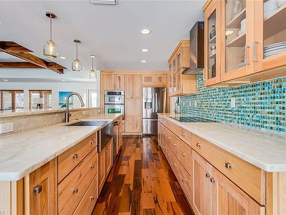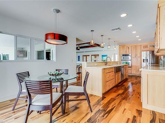 Don't miss out on this amazing Royal Harbor transformation. Fully renovated in 2014, this waterfront home offers magnificent waterfront views, complemented by tray ceilings in the great room, pecan hardwood floors and a gourmet kitchen. This home is ideal for entertaining, it features a spacious open floor plan that flows to the east out to a huge lanai, pool with spa and outdoor summer kitchen. A lush tropical landscaped yard, spotted with mature trees, leads to the boat dock that is equipped with a 10k lb boat lift. With an ideal direct Gulf access location, this 3 bedroom, 3 bath home with cabana that could easily convert to a 4th bedroom is unlike any other home you have seen. Do not miss this fantastic opportunity. Within minutes of 5th Ave, Old Naples, and white sandy beaches.