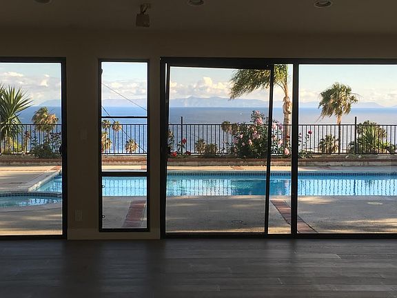 Incredible 180-degree panoramic ocean, Catalina Island and sunset views... 5-bedrooms, 4-baths plus man-cave, pool and spa! This Mid-Century Modern home has an open floor plan with vaulted ceilings, recessed lighting, & walls of glass looking out across the pool/spa to the Pacific Ocean with Catalina Island in the background. Completely remodeled from top-to-bottom in 2016 with designer wide-plank hardwood flooring throughout & decorator sculptured carpeting in 5 bedrooms. Custom-built espresso Shaker cabinetry in cook's kitchen with beautiful granite counter tops, mosaic backsplash, wide peninsula for entertaining, 6-burner Thermador cooktop with stainless range hood & Viking refrigerator. Large living room & gigantic formal dining room, stack-stone floor-to-ceiling fireplace, multiple skylights, wired for surround sound, new roof, new electrical panel, A/C, upgraded plumbing, resurfaced pool/spa. Two bedrooms on main level (one with ensuite bath & Carrera marble flooring) & three spacious bedrooms on upper level (large master with ensuite Carrera marble bath, dual lavs, freestanding modern tub & walk-in closet, all with views. Huge laundry room on lower level with man-cave & additional room for wine cellar/studio/gym. 2-car finished garage.