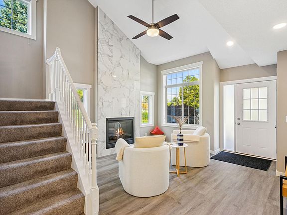 WOW, you won't believe how amazing this place is! Compare to brand new construction as the majority of the interior has been recently renovated. Everywhere you turn is new! STUNNING new kitchen with new cabinets and centerisland, new solid surface quartz counters, new backsplash, new stainless appliances, New fireplace surround wall, new Furnace, New water heater, New A/C, new 3-panel doors, New window treatments, New garage door for the HEATED garage, new trim, new lights, new carpet and flooring.......the list literally goes on and on. Very desirable end unit with a bright open concept floor plan. Great location close to freeway and shopping. You will not want to miss this one!