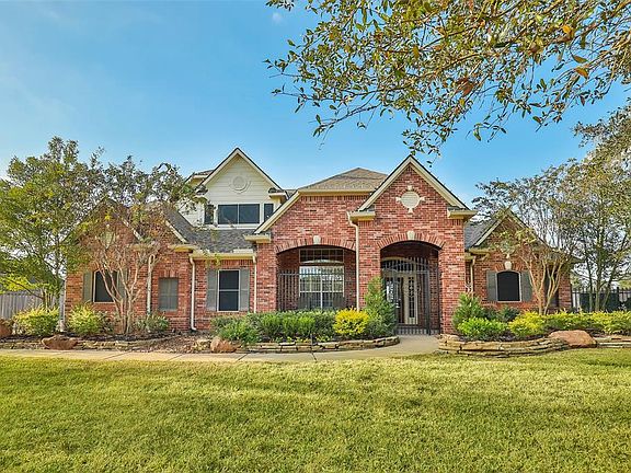Absolutely stunning, inside and out! NEVER FLOODED! You will love this beautiful 1.5 story home nestled on a large .67 acre lot with incredible lake views, tree lined green space, gorgeous Roman style pool added in July 2018. This home includes an unbelievable master with sitting area and fireplace, ensuite bath, with XL walk in closet! The home offers 3 add'l spacious bedrooms, 4 1/2 baths total, office, formal dining, large game room up that includes full bath (can be used as a 5th bedroom). Incredible kitchen, lots of cabinets, granite counters and open to living room & breakfast. This gem includes an oversized large rock patio and rock walkways with roof extended covered patio. Immaculately kept, many updates; fresh interior paint 01/20, WIFI garage motor '20, WIFI RainbirdSprinkler Control '19, new roof 09/19, 5 ton AC in & out 02/19, solar window covers 06/18, two 50 Gallon water heaters 11/17. This beautiful home can be yours today!