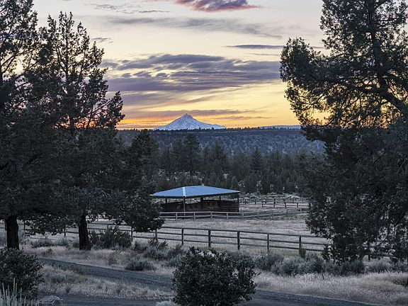 Situated high on a ridge with expansive views of the Cascade Mountains and rolling fields, this one of a kind, single-level, Santa Fe inspired home is loaded with warmth, character and authentic architectural details that include arches, rustic wood beams, tile floors and Santa Fe style doors. Open Great Room includes a cozy sitting area w/fireplace and elegant dining space. Entertainer's kitchen has a breakfast nook and door that opens to a large outdoor space for enjoying incredible sunsets and stunning landscape. Primary suite has a private entrance, luxury bath, walk in closet and soaking tub. Two guest rooms share a bath. Wonderfully designed equine spaces include two expansive loafing sheds, six-stall barn with tack room, hay storage, a large outdoor arena and multiple cross-fenced paddocks. Huge detached shop w/ two large bays and workshop. Add'l two car garage. Bordering private lands for miles of riding. Sellers will give a credit for some of the deferred maintenance.