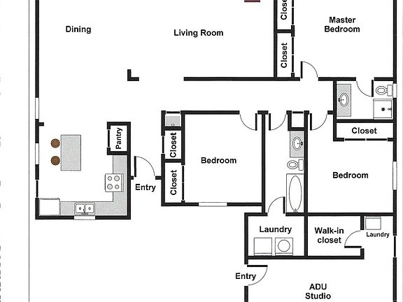 This is a MUST SEE! Welcome home to this upgraded 3 bedroom 2 bath home with a gorgeous permitted ADU garage conversion which includes a full bathroom, kitchen, washer/dryer, and a walk-in closet. ADU has its own separate entrance and address. Look forward to cheaper electric bills with a paid off 18 panel solar system. The main house has an open concept with a living room connected to a dining area just off of the kitchen. Major upgrades throughout, including roof, driveway, stucco, windows, bathrooms, fixtures, paint, water heater, cabinets, and countertops. This established desirable location will not disappoint.