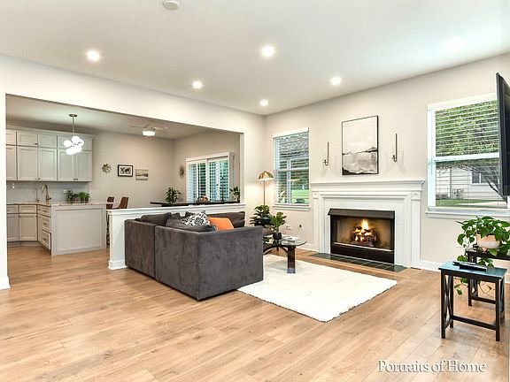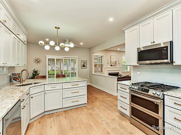 MLS# 12128966 Absolutely stunning end-unit ranch townhome completely rehabbed. Features a screened patio overlooking the 7th fairway of the Blue course. Everything has been done: Professionally designed Kitchen with 42" dove grey cabinets, new SS appliances, oversized granite countertop for cooking and entertaining. New luxury 6 inch plank flooring with 4" baseboard trim throughout. Open concept living/dining areas perfect for hosting formal gatherings; contemporary light fixtures and recessed lighting throughout; gas fireplace with custom mantel/surround; plantation shutters on patio door; Updated bathrooms with frameless shower doors, marble vanity tops, new faucets. New windows - the list goes on! Furnace, A/C, water heater (2022). Roof (2017). Versatile 3rd bd can be Office. In Carlisle homeowners' association (Dupage taxes cheaper than Will County.) Located in popular Carillon Plainfield 55+ active adult community; 24-hour security, 3 swimming pools, pickleball courts, clubhouse, exercise room. Schedule a showing now -this will go fast!