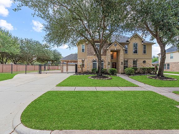Beautiful 5-bedroom, 4.5-bath Ashton Woods home on an oversized cul-de-sac lot in sought-after Long Meadow Farms. This spacious 2-story offers over 4,500 sq ft of living space with a bright family room, wall of windows, and a cozy gas fireplace. The gourmet kitchen features granite counters, stainless appliances, oversized island, breakfast bar, and walk-in pantry. The first-floor primary suite includes a sitting area, bay windows, double sinks, jetted tub, and separate shower. A private home office, formal dining, and sunroom add versatility. Upstairs offers a large game room, built-in workspace, and four spacious secondary bedrooms - one oversized 2ND PRIMARY BEDROOM with en-suite bath plus a Jack-and-Jill setup. The backyard includes a basketball court, extended driveway, and privacy gate with plenty of space for outdoor living. Enjoy community lakes, trails, and amenities, all zoned to top Lamar CISD schools. Schedule your private tour today!