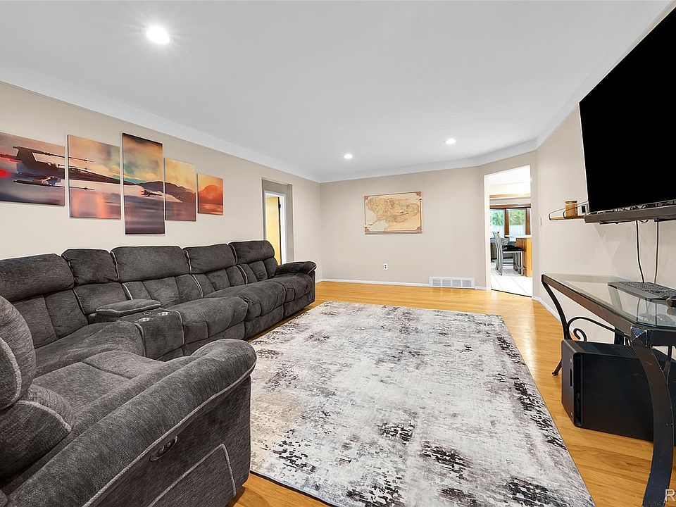 Welcome to 21118 Michael in St. Clair Shores! This spacious 1,359 sq ft brick ranch offers comfort and style in a prime location within the Lakeshore School District. Upon entry, you’re welcomed by a large living room featuring hardwood floors, setting a warm and inviting tone. Down the hall are three comfortable bedrooms—one with exposed hardwood and two with newer carpet, both featuring hardwood underneath—and a modern full bath with a relaxing jetted tub. The spacious kitchen features a pantry, an island with seating, and all appliances, and flows seamlessly into a second living room with a cozy fireplace, perfect for gatherings or quiet nights in. A convenient half bath and an attached two-car garage add to the home’s functionality. The newly finished basement offers an ideal space for entertaining and comes complete with an 86-inch TV and built-in sound bar framed in custom woodwork. Outside, enjoy the fenced-in yard with a stamped concrete patio, perfect for outdoor dining or relaxation. Located in the Lakeshore School District and close to Metro Parkway and the Nautical Mile, this move-in ready brick ranch offers comfort, style, and a fantastic location. Schedule your showing today!
