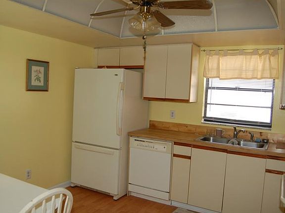 Lovely 2 bedroom 2 bath home in a non-deed restricted community! Open living room/dining room combination, new laminate throughout with tile in the kitchen and baths. Beautiful lanai perfect for entertaining! Detached air conditioned workshop for Dad. The location is great - close to shopping, schools, and restaurants. Come see today!