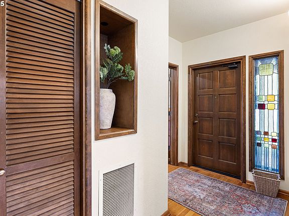 Set on a spacious corner lot in one of Eugene’s most desirable neighborhoods, this classic 1950s gem with MCM flair is directly across from beautiful Washburne Park and just blocks from the University of Oregon, Hayward Field, Matt Knight Arena, and more. Seamlessly blending vintage charm with thoughtful updates, the home features beautiful hardwood floors, warm wood accents, crafted built-ins, and artistic touches throughout. The main level includes two generous living areas, with the second living room offering a perfect option to serve as a office, den, or even a combo. The dining room opens to a private deck and picturesque fully fenced backyard—perfect for relaxing or entertaining. Main floor laundry is located in the large mudroom, with direct access to the backyard. Mature trees offer privacy, while the oversized two-car garage and secluded deck enhance both function and comfort. The unfinished basement provides ample storage, including an enclosed wine cellar or storage room. Enjoy a truly walkable and bikeable lifestyle—just two blocks from Edison Elementary and Prince Pückler’s, a short stroll to the U of O, and only half a mile from Laurelwood Golf Course. With solid bones, a premier location, and potential for further customization—including a garage large enough for a flex space or possible garage conversion—this is a rare opportunity to own a home with enduring value. Expanded in the 1970s, the home also includes updated upstairs bathrooms (circa 2007), a newer roof (2020), and brand-new AC and furnace (2025).