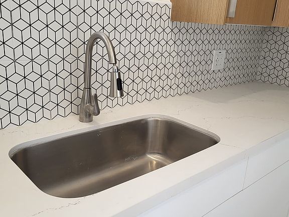 Kitchen: Remodeled contemporary kitchen with brand-new appliances including a dishwasher and quartz countertop.