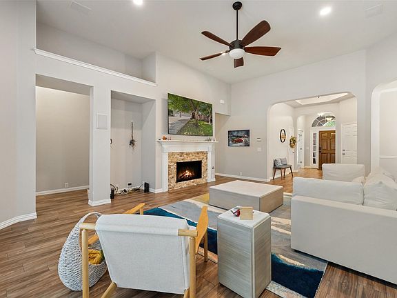 Welcome to an exquisite single-level residence located in Round Rock, TX. This attractive property offers an exceptional living experience with elegant features throughout. The air conditioning unit was replaced July 2024 and new pool filters were just installed August 2025. The home features tile flooring in the main living areas and kitchen. The living room is a magnificent space with a soaring high ceiling, crown molding, and a gas fireplace, creating a truly inviting atmosphere. The kitchen is a culinary haven, equipped with a stovetop, a generous island, stone countertops, and a stylish backsplash. The bathroom offers a private retreat with a double vanity, a walk-in shower, and a jetted tub. This property includes four bedrooms and two bathrooms, along with a convenient three-car garage. The fenced backyard provides privacy, and the patio is an ideal setting for relaxation. You can also enjoy the luxury of a private pool and an in-ground hot tub, perfect for unwinding and entertaining. A dedicated laundry room adds to the home's practicality. This Round Rock residence is situated in the well-established Sonoma neighborhood, offering easy access to many high-tech companies.