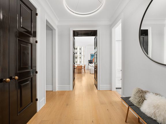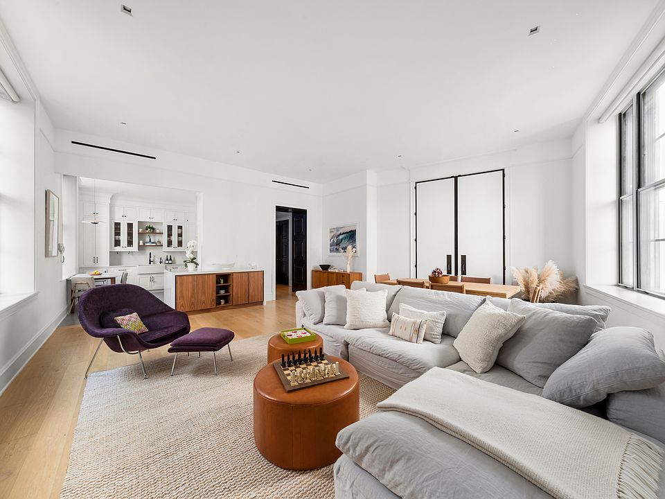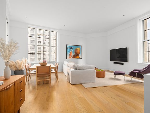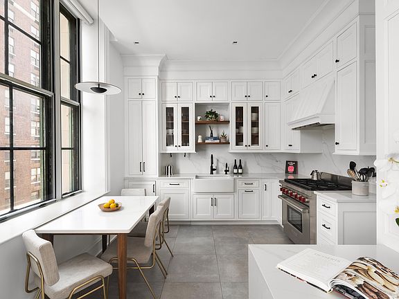 Live luxuriously in a grand, 3 bedroom 3 bathroom apartment in the iconic boutique Apple Bank Condominium. This Upper West Side gem boasts generous light-filled interiors and is meticulously designed with the finest finishes and materials, affording a comfortable, elegant lifestyle. A large foyer welcomes you and impresses with its statement chandelier and airy loft-like feel. Setting the ambience are high 11'5" ceilings, white oak floors, tasteful moldings, and oversized windows through which sunlight pours in from the west and northern exposures. The beautiful 2,200 square foot home offers a large living/dining room for ease of entertaining, met by a spacious eat-in windowed kitchen. Stunning chef's quarters are appointed with abundant cabinetry, beautiful marble countertops, a hooded Wolf industrial stove, Sub-Zero refrigerator, Miele dishwasher, and Wolf microwave. Unwind in the incredibly expansive primary bedroom suite, brightened by massive windows and adorned with timeless custom built-ins, plus a fabulous built-in entertainment system. Your retreat also features electric blinds, a walk-in customized by California Closets, additional closets, and pristine windowed bathroom, styled with heated floors, a sleek dual-sink vanity, soothing soaking tub, separate spa-like shower, and Toto Washlet toilet. Situated on the opposite side of the apartment are the spacious, inviting secondary bedrooms and full baths. One of the sunny bedrooms has a wall of built-ins and versatility for use as a home office/library/bedroom. A laundry closet with a vented washer/dryer, shelving, storage and an additional sink provides the ultimate convenience. Every detail of this upscale residence is refined, and storage is excellent throughout. Built in 1928, the landmarked Apple Bank Building occupies an entire block bordered by Broadway, Amsterdam, 73rd and 74th Streets. It is still home to the in-operation Apple Bank housed in the buildings spectacular vaulted banking hall. A 24-hour doorman, live-in super, concierge, gym with Peloton bike and treadmill, common laundry room, locked bike room, and grooming area for pets are among the attractive amenities. Your mail and packages are delivered directly to your door from the exceptional full-service staff. Right outside you'll find it all: buses, trains, Central Park, Riverside Park, acclaimed museums, Lincoln Center, the finest food markets, chic shops, and restaurants. This quiet part of Broadway, past the intersection of Amsterdam Avenue, sits in the heart of the Upper West Side!