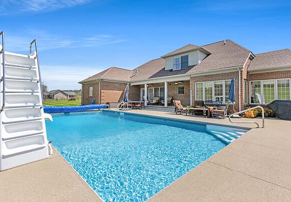 Sellers job relocation is fortunate for the new owners of this fantastic all brick two story home. Featuring 5 bedrooms, 3.5 baths, large laundry room, 2 fireplaces, wonderful Kitchen with all new high end appliances including gas cooktop. Beautiful Primary En Suite with one of the fireplaces is conveniently located on the first floor as well as another bedroom or office. Formal Dining Room, Great room plus Family Rm off the Kitchen. Upstairs you will find 3 bedrooms, full bath plus large recreation room. Outside you will fall in love with the 20x40 inground salt water pool with new electric cover, pool pump, & filter. Approximately 3 acres are fenced for animals with a 36x12 run-in shed. The home has a new roof and lower level high end HVAC. All this on 6.11 acres!