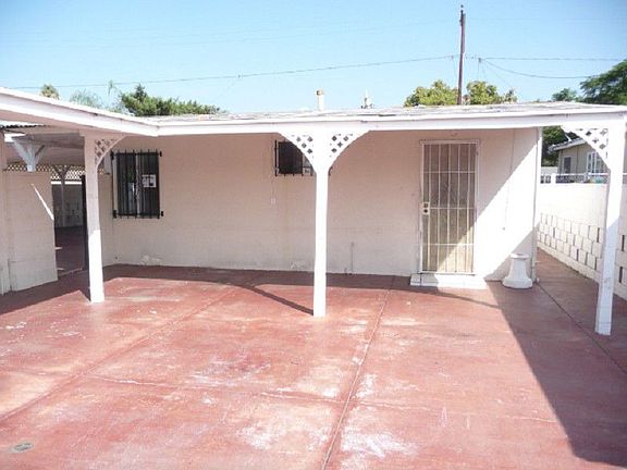 area PLUS breakfast bar! Main house includes two bedrooms and 3/4 bath. There is backyard access thru the kitchen onto a concrete covered patio an maintenance-free (all concrete and tile) backyard! 2-car detached garage that has been converted to living area (without permits). Laundry area is in the garage. There is a BONUS ROOM behind the garage PLUS STORAGE ROOM and a 2-car COVERED CARPORT at the side/front.