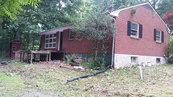 Brick ranch on full basement with 1 1/2 baths, nestled in rural setting surrounded by trees. Situated on private 3.3 acre lot. Central location for Montgomery County. Christiansburg schools. Front porch is unsafe, access house from rear door. BE CAREFUL!