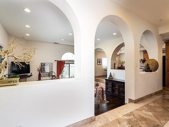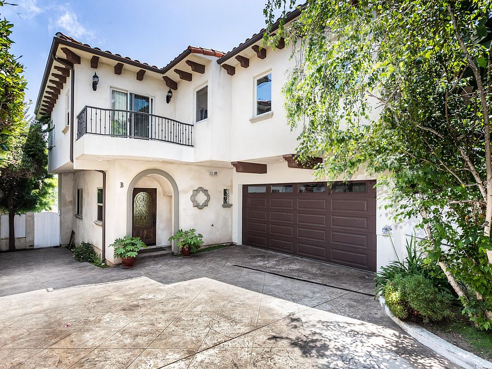 Watch the sunset reflecting on the windows in Palos Verdes from this completely detached rear townhome, Unit #B. Built in 2004, it is located on one of the less traveled, one way, streets in North Redondo Beach. Mature landscaping frame the stamped concrete drive down to this lovely "Santa Barbara style" home, enhancing the dark corbels and clay tile roof. The front door has a covered alcove to keep your guests out of the rain. When you enter, You will notice the interior archways and sunken living room with 11 foot ceilings, travertine and hardwood floor and a kitchen with stainless steel appliances, dark granite counters with a stone splash. Sliding doors lead to a sunny south facing, very private, yard and patio with mature landscaping. This is a sought out floor plan with the laundry room and all bedrooms on the top floor. Then the spacious Primary Suite is complete with an extra sitting area and balcony with superb views of Palos Verdes. For extra convenience there is a 2-car attached garage with room for 3 more cars in the driveway. This is a wonderful location, high on a hill, that provides beautiful views and a breezy and bright interior. Owners suggest that they rarely need to turn the lights on. They especially have enjoyed the private yard and the city light view, especially in the evenings. Close to Beaches, parks, award winning schools, LAX and wonderful shopping and restaurants. You will love this neighborhood and Redondo Beach lifestyle! Owner pays for landscaping. No pets and no smoking.