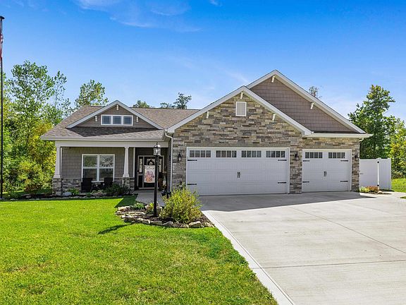 Located just 2.4 miles from Jefferson Pointe shopping center, 2.6 miles from Sweetwater Sound, and easy access to I-69, this stunning four year old home built by Majestic Homes perfectly blends comfort, style, and functionality. Designed with an open concept layout, the Sangria floor plan features three spacious bedrooms, two bathrooms, expansive culinary space, and a light filled sunroom - the ultimate space for modern living. The heart of this home is the chef-inspired kitchen that invites you to enjoy abundant custom cabinetry, quartz countertops, a massive 5'x7' island, stainless steel appliances, and a large walk-in pantry...it is absolutely perfect for entertaining and everyday convenience. Durable vinyl plank flooring flows seamlessly throughout the main living spaces, while a dedicated mud room adds practical storage and organization. The primary suite features a luxurious curb-free custom tile shower with two shower heads, custom closet storage, and ample natural light. Thoughtful, well designed spaces can be found throughout this like-new home. Relax year-round in the sunroom and enjoy the warmth of the fireplace and peaceful wooded views. Outside, the expansive 23'x12' covered patio and additional 23'x10' open patio are perfect for gatherings or quiet evenings. The front yard irrigation system, complete with rain sensor and a separate water meter, will make watering your lawn a breeze. Situated on a half-acre, partially wooded lot with privacy fence, this home offers both privacy and outdoor enjoyment. Car enthusiasts or hobbyists will love the oversized 25'x32' three car garage that is conveniently plumbed with a gas line for a future heater installation. The home has been pre-wired for a generator as well. The curb cut driveway adds easy access and ample parking. Do not miss the opportunity to own this beautifully crafted, move in ready home!