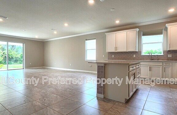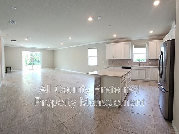 This beautiful 3bed/2bath + office home is beautiful, clean, bright, and ready to be called ''Home''. The location is close to major highways, a straight shot north on Narcoossee Rd to Lake Nona, easy access to Orlando International Airport, a ride to the east to the beaches of Melbourne, I-95, and access to the Space Center, and more. Restaurants and entertainment are all around and easily accessible. This home comes with access to the community pool, a playground, and other amenities. The house has an open floor plan with tall ceilings and ceiling fans in the bedrooms. Tile flooring throughout the house and a nice touch of crown molding. The kitchen is beautiful with a large kitchen island, stainless steel appliances, and quartz countertops. The master bedroom features a custom closet and a great view of the backyard. The master bath has dual sinks, beautiful quartz countertops, and a large walk-in shower. The living room has custom blinds on the sliding glass doors that lead to the patio and a view of the trees, with no rear neighbors. Whole-house water softener. Exterior security cameras installed on property. Washer and Dryer are available for use by the tenant. Pets allowed; max. 20lb.