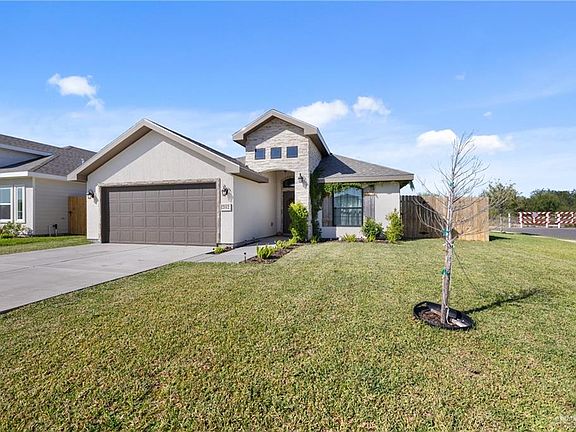 Beautiful new construction home built in 2024 located in a rapidly developing area of Hidalgo, Texas! This modern residence features 4 bedrooms and 2 bathrooms with an open-concept layout and high ceilings that create a bright and spacious atmosphere throughout. The functional floor plan offers a welcoming living area that flows seamlessly into the kitchen and dining space — perfect for family gatherings or entertaining guests. The large backyard provides plenty of room for outdoor activities, BBQs, or future additions like a pergola or pool. Ideally situated near schools, shopping, and dining, this home also offers quick access to international bridges, making it an excellent choice for commuters or frequent travelers. Located in a high-growth area of Hidalgo, this property combines comfort, style, and investment potential.