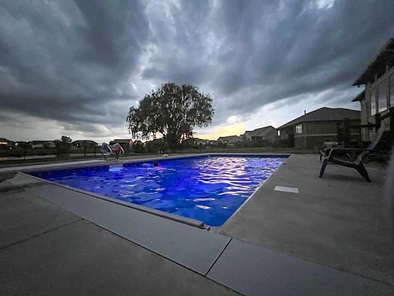 It doesn’t get better than this – a country feel in a gorgeous neighborhood, a new saltwater and heated pool, views you dream of, and high-end finishes throughout this custom-built home. As you enter the home you will find a grand foyer with gorgeous walnut hardwood flooring throughout the kitchen, dining, and living area. Overlook the serene backyard setting from many areas of the home including the hearth and kitchen area. The kitchen offers two toned cherry cabinets, a high-end gas stove, large island with eating bar, a pantry, and granite countertops. You will love the coffered ceilings, open concept living, knotty alder woodwork, surround sound, cozy Lennox woodburning fireplace, and rounded corners. Also, on the main floor you will find a master suite with a spa like jetted tub, walk-in shower, double sinks, and a walk-in closet. There are two additional bedrooms, a second large full bathroom, laundry room, and a powder bathroom on the main level as well. In the full finished, walkout basement you will find a wet bar, two rec/family room spaces, a darling castle playhouse area, and two separate storage room areas. The bar will even accommodate a full-size fridge! There are two additional bedrooms, plus a separate office, and a third full bathroom in the basement as well. Radiant heat floors are also located in the basement. No lack of storage in this home – tons of built ins and shelving in the storage rooms. Now head outside to the 22x14 covered, composite deck that overlooks the new saltwater pool, community pond, and lush landscape. If that isn’t enough, head to the garage area with some unique features that will make your home stand out. The side load garage has an epoxy floor and the other side of the garage has a 14x12 door on the front, an 8x7 overhead door on the rear, and a 30 amp hookup to accommodate an RV or other rec activities. This area will hold at least 2 vehicles tandem plus mowers, bikes, tools, and more. The homeowners were told the entire home was framed with BluWood which is mold, mildew, and termite resistant and the exterior finishes include concrete siding and smart trim. Other amenities include a sprinkler system on a well (new backyard sprinkler system and front heads were replaced), a 75 gallon water heater, new blinds throughout, and home was built with vinyl low-e windows. The pool is a must see – stadium steps, special lights that can change colors, salt water, heated, and has an automatic safety cover. Special taxes have recently paid out as well – what a deal! Homeowners have also loved the bus stop is right in front of the house! Must see to appreciate this beautiful home in Elk Ridge.