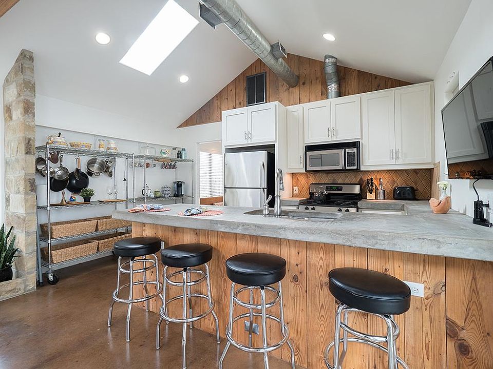 Light-filled cottage located behind a historic home in Bouldin Creek. Newer construction, high ceiling, and modern features allow this unit to feel larger than the square footage. The home features an open concept living area, treetop loft workspace, in-unit laundry, and a staged outdoor patio area. Easy off-street driveway and a fully fenced yard with a security gate provide great privacy. This is ideal for a single professional or couple needing a flexible lease. Highly walkable to South Congress restaurants and entertainment, as well as South 1st street hot spots such as Lenoir, Polvos, Sugar Mamas Cupcake, and many food trucks. Live the Austin Lifestyle! Rent includes all furnishings, utilities, internet, and yard care. 60 days minimum stay. Cleaning Fee: $225 Pet Fee: $300 (One Pet only. Less than 40 lbs.) Tenant screening and lease signing required.