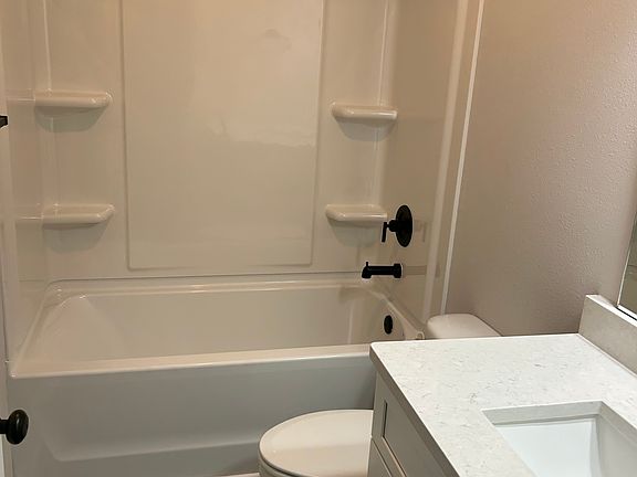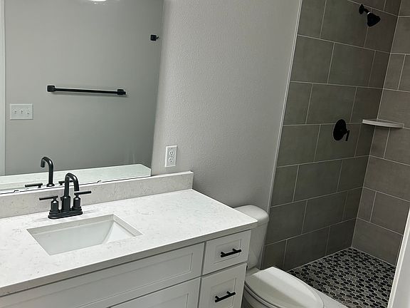 Single car garageBeautiful quartz countertopsCustom tile shower