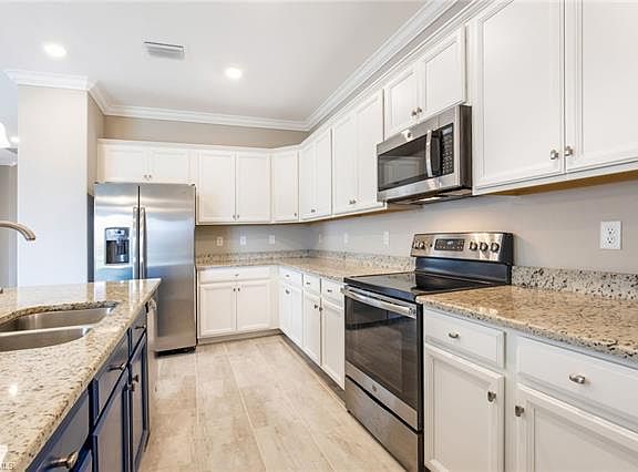 This home is move-in ready and was barely lived in! Why pay for new construction when you can get more for your money! This upgraded Lennar built Trevi Model home in beautiful Orange Blossom Ranch is a must-see! This home boasts 2,032 SQFT under air with a spacious lanai for entertaining. This single-story home features 4 bedrooms, 3 full bathrooms, and a 2 car garage. The master suite features 2 spacious walk-in closets and a master bathroom with dual sinks, a garden tub and a separate shower. Tile in the kitchen, foyer, and bathrooms; with gorgeous Flooring throughout the living and dining rooms. Orange Blossom Ranch is a great community with amenities including two pools, hot tubs, clubhouse, basketball courts, volleyball courts, tennis courts, BBQ Areas and a childrens play area. In addition to those amenities; your lawn and irrigation system are included! On top of all that, the HOA fees are very reasonable!