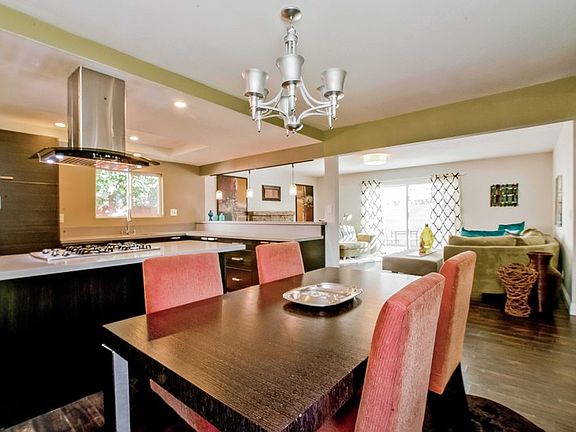 Upgraded home with mountain views in South Monrovia at the end of a private drive. Open dining, kitchen and living area that look out to a sunny patio and fenced yard. New kitchen with stainless steel appliances and a stone countertop. Master suite with a reach in closet and a new bathroom with a luxury shower. Two additional bedrooms and tiled hall bath. New garage door, new copper plumbing and duel pane windows. Two car garage with laundry hookups and driveway parking for three cars.