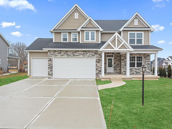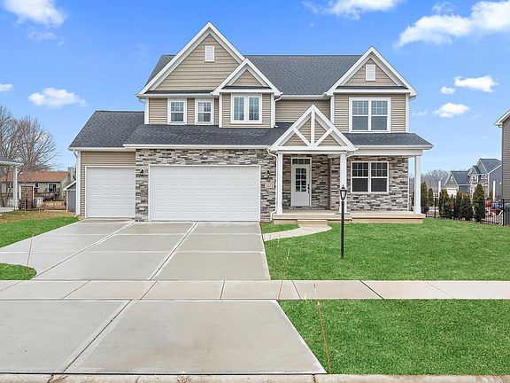 Centrally located in Chesterton, this gorgeous new build is one of the last in Stone Meadows Subdivision. Main floor features a main floor office/dining/flex room, 1/2 bath, mudroom with wainscoting, and open concept with a fireplace in the great room. Kitchen has quartz counters, white cabinet perimeter with black island. Upstairs you have your laundry room, all 4 bedrooms with 2 full baths. Step into your upstairs primary suite to find a huge primary closet with windows to let in light. Primary en-suite features floor to ceiling tiled shower and a stand alone luxurious modern soaking tub. HEATED FLOORING IN MASTER BATH! Don't forget about the huge 3 car wide garage and a full unfinished basement that offers endless possibilities! Award winning schools, 10 min to South Shore Line and even less to all major Highways! Low Taxes!