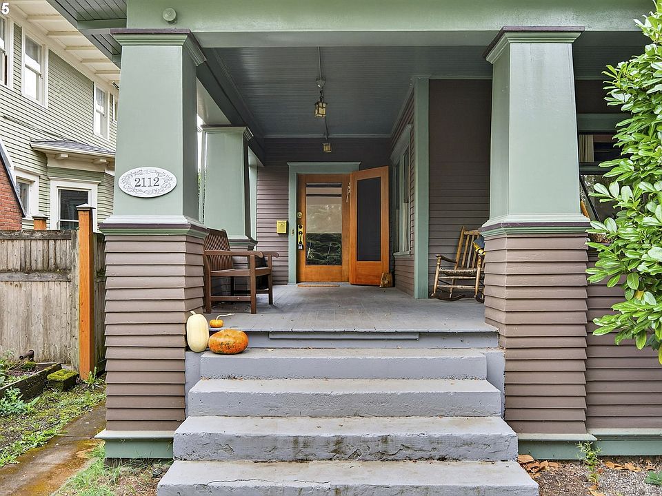 Nestled in the heart of Portland’s beloved Ladd’s Addition Historic District, this stately 1912 Craftsman duplex offers over 5,000 square feet of timeless charm and flexible living space. Located on a wide, tree-lined street surrounded by architecturally significant homes, this property is just blocks from the vibrant cafes, restaurants, and shops of Hawthorne and Division Streets, and steps from Abernethy Elementary and Ladd Circle Park.The bright and spacious upper unit spans the top two floors, offering five bedrooms, two full bathrooms, and a treehouse-like perch above the neighborhood. The upper unit also includes an open living and dining area, two bedrooms, a full bath with clawfoot tub, and a well-appointed kitchen. A covered east-facing sleeping porch provides a peaceful retreat with year-round views. On the top floor you’ll find three more bedrooms—including one with a cozy sleeping loft and another with soaring cathedral ceilings and a chandelier—plus a second full bath with a spa-style shower. Fresh paint, newly refinished oak floors, and original Craftsman details like wainscoting, built-ins, period light fixtures, and trim elevate the historic character.The ground floor unit is a generous one-bedroom apartment with formal living and dining rooms, a fireplace, wood floors, large kitchen with built-ins, and an oversized bedroom with vintage bathroom finishes.A full-height shared basement includes a washer/dryer, abundant storage, and a separate exterior entry—offering future potential. A large covered front porch invites community and connection, while the sun-soaked backyard features established planting beds ready for gardening or outdoor relaxation.This is a rare opportunity to own a piece of Portland history in one of its most treasured neighborhoods—whether as an owner-occupied duplex, multigenerational home, or investment property.