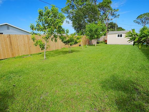 This spacious 4/3/2 home features a den, cabana bath, and front and rear porches. It includes stylish ''Shaker Style'' wood cabinetry with pulls and crown molding, as well as a separate tub and shower. A complete appliance package, including a washer and dryer, is also included. The property is fully fenced and boasts fruit trees, an oversized 8-foot Tuft Shed, and a whole-home reverse osmosis water filtration system. Additional highlights include a split zone in the garage and gutters. Located in beautiful Port Saint Lucie, you'll find excellent schools, fine dining, shopping, and entertainment just minutes away, with easy access to US Hwy 1, FL Turnpike, Crosstown, I-95, and other major thoroughfares.