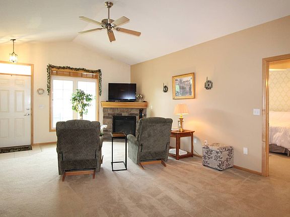 Welcome to the coveted Sawgrass community of Ankeny! Located conveniently on the SW side of Ankeny and nestled in a peaceful community you have the perfect townhouse community. This 2BR/2BA home offers over 1300 SF of zero grade entry throughout. Your entry is hidden around the corner with a private open patio to enjoy those spring days. As you enter you will notice the large vaulted ceilings and plenty of windows for maximum light and a cozy gas fireplace with stone surround. The large master has an over-sized en-suite with jacuzzi tub, walk in closet and private shower. There is another guest bedroom perfect for an office and full bath. The kitchen is open with floor to ceiling storage and laundry located conveniently off the kitchen. There is an attached 2 car garage with built-in work bench and attic access for more storage. These rarely come up and wont last long call Brook the agent today!