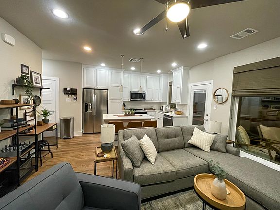 This recently built condo near Love Field/Medical District offers a spacious layout spanning two stories, featuring 2 bedrooms and 2.5 bathrooms. The main floor includes an open-concept living and dining area with several large windows for plenty of natural light, and a backyard patio slip and small yard with enough room for a dining table and seating arrangement. The modern kitchen is equipped with sleek appliances and ample cabinet space. Bedrooms are located upstairs, each with its own ensuite bathroom. The unit has been upgraded with laminate wood flooring throughout and comes furnished. A private garage is attached to the unit. The unit can come with or without furniture. Parking is included with room for 2 vehicles with a private garage and covered carport. Pets are welcome with certain restrictions and additional fees. To maintain a clean living space, smoking is prohibited. Utilities including electricity and internet are not included in the rent and are the responsibility of the tenant. Homowners's association fees are included in the rent and cover monthly the monthly water bill.