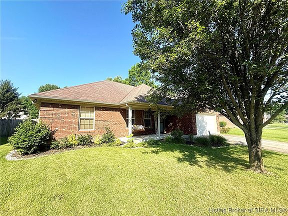 Great opportunity to own this large ranch style home in one of Sellersburg‘s highly sought after subdivisions, Sterling Oaks. This three bedroom two bath home features vaulted ceilings, eat-in kitchen with tons of cabinet space and counter space, all matching stainless steel appliances, and many upgrades throughout. Vinyl plank flooring throughout the main living areas and two of the three bedrooms. Tile flooring in the laundry room and an all seasons room perfect for a playroom or entertaining space. Large laundry room just off the owners suite with sink. Large primary bedroom with ample amount of space for larger furniture, full walk-in closet with tons of shelving and a soaker tub and large vanity in the owners suite bathroom. Large two car garage and huge fenced in back yard with detached shed and large decking area. This home also qualifies for USDA Rural Housing no money down to those who qualify making this a sought after property and area. Call today to see this great home.