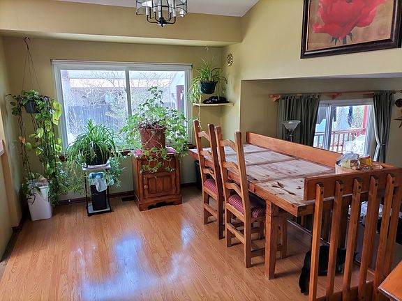 Lots of indoor plants and natural light downstairs, too. Skylights and bay window in the kitchen.