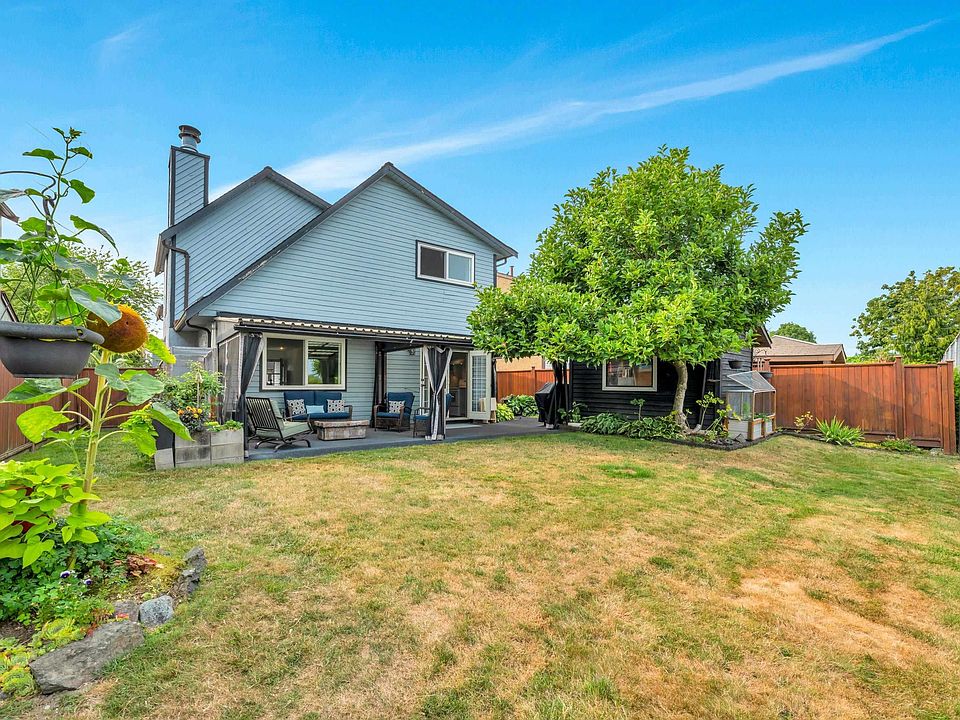 Great Langley Meadows location on a family friendly cul-de-sac with Elementary school right outside your door! Main floor has living rm with cozy gas fireplace and beautifully updated kitchen with island prep space ~ fridge and dishwasher updated to S/S in 2024. Step out to the amazing massive covered solarium that converts to screened in enclosure for the summer. Great extension of your home! There is a powered shed providing great storage. No neighbours behind~ backing on to park/school! Upstairs offers 3 super spacious bedrooms and convenient laundry in huge 5 pc bath. Updates include roof (2012, 50 yr), windows (2015) Hot water tank (2024) bathroom floor, paint, ceiling fans and much more! Great access to everything including shopping, restaurants, and schools. Call today to view!