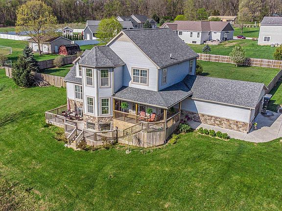 NEW IMPROVED PRICE Live your own fairytale in this newer construction modern Victorian home. Enjoy peaceful country living close enough to Notre Dame to hear the crowd on game day. Located near both the bypass and the toll road, this location couldn't be more convenient. This gorgeous home features 5 bedrooms, 3.5 baths, a multi level wrap around porch, over 1 acre of privacy fenced property, a large hot tub, new above ground pool 2023, an impressive main level master suite that features an oversized bath and walk in closet. Natural light floods every part of this home, including the fully finished lower level. Plus NO HOA!