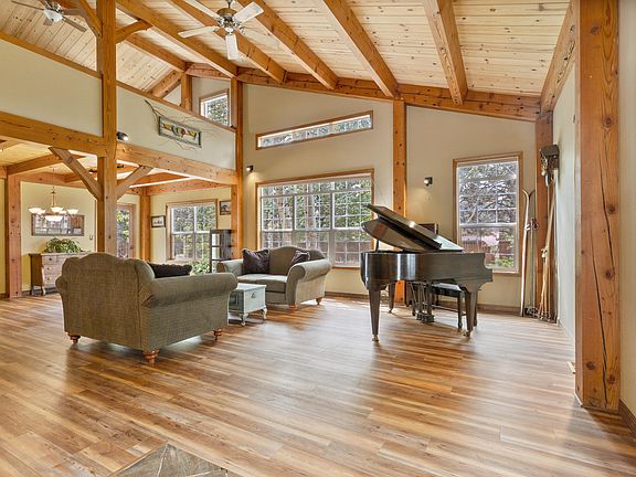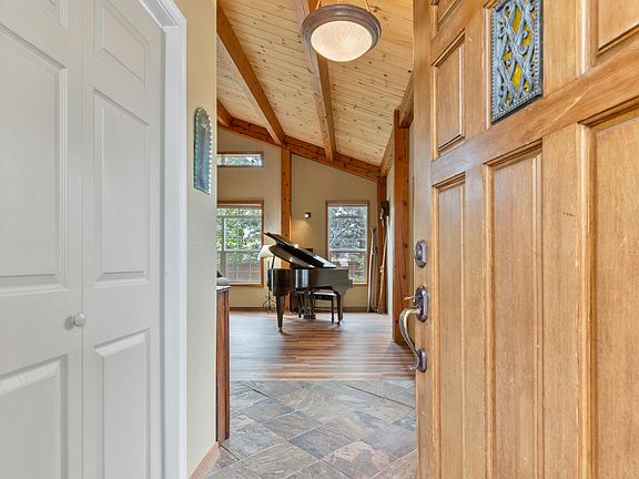 Fantastic value!! This home is re-entering the market at a brand new price and fresh new roof with added bonus features.This gem sits on just under half an acre and is ideally located in close proximity to Larkspur park/trails, Alpenglow park, Costco, shopping, medical facilities, and restaurants. The front yard has ample space for storage for all your toys. The backyard includes multiple entertainment areas and a greenhouse/storage shed with plenty of space for an optional ADU. This Timber frame home offers beautiful vaulted ceilings upon entry with the primary bedroom on the main level. The main floor also includes two flex rooms that can be used for a hobby room or an office/ den right off of the great room. The upper level features two additional bedrooms and a loft, ideal for a home office. The garage fits two cars with multiple workshop spaces plus storage shelving. This property offers endless options and opportunities. Refer to attached Features Sheet for complete list.