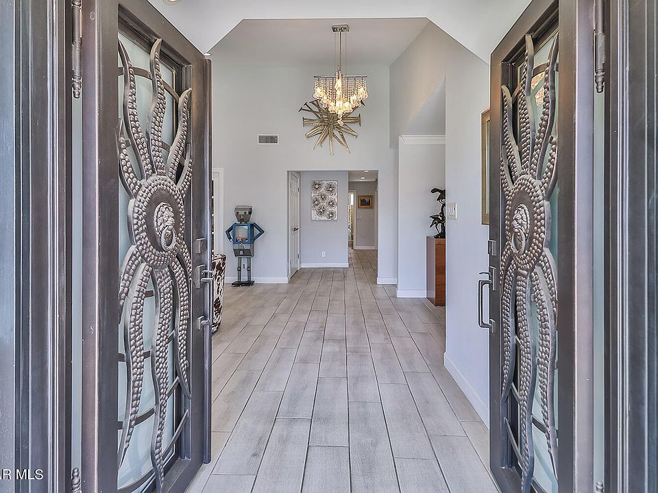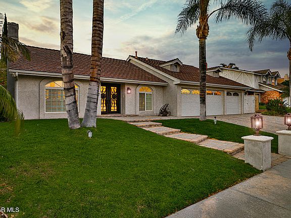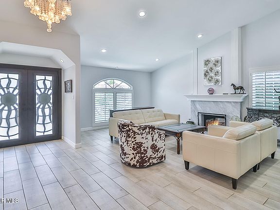 Welcome to this gorgeous single-story Modern Style Estate. This beautiful home is great for entertainers and quietly nestled on a cul-de-sac. The attention to detail in this home is amazing. The FIRST thing you will notice is the modern smooth concrete finish on the home instead of stucco, custom pavers make up the driveway & walkway leading up to the 3 car garage. The front doors were imported and custom-made with a sense of elegance. Upon entering you will notice the spacious open floor plan with an abundance of natural light. The flooring is seamless and consistent throughout the home. Formal living room, oversized windows, smooth texture finish the walls, sellers spent over $100,000 on kitchen remodeling, soaring skylight hovering over a custom gourmet kitchen with marble countertops, backsplash, Subzero refrigerator, stainless steel appliances, center island and breakfast nook that opens up beautifully to the family room. This home features 3 bedrooms plus an office/yoga room, 2 fireplaces in the main living quarters. The Master is perfect for relaxing and includes a walk-in closet, large ensuite bathroom with a custom shower, and an oversized tub to unwind. The detached guest unit is approx. 1,045 square feet and is fully customizable, it's kitchen ready (plumbing in place) including a 3/4 bath & fireplace. Possibilities are endless, great for short or long-term guests or a hobby room, pool house, cinema room or you can make it your own personal SPA getaway. This large private backyard is a mini paradise and great for entertaining. With beautiful palm trees, green foliage & manicured grounds surrounding the property. You can lay by the pool, read a good book by the waterfall, play basketball on your own court or simply lay out on the grass basking in the sun. This landmark home feels both expansive and intimate, all bathed in natural light.