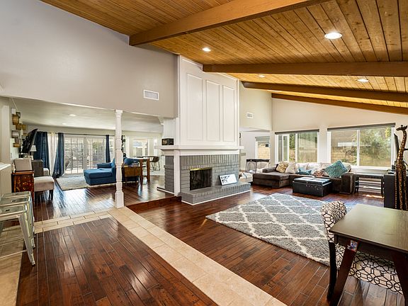 Absolutely gorgeous single story home with 4 bedrooms, 2.5 bathrooms, pool, full size North/South tennis court, paid solar panels, and 3 car garage!!! Double door entry leads you into the foyer with wood floors and wet bar that is perfect for entertaining. Open floor plan with formal living room with vaulted wood beam ceiling with recessed lighting, open to a large formal dining room, and double sided fireplace that is open to the family room. Family room is light and bright with smooth ceilings, recessed lighting, is open to the newly remodeled kitchen, and has sliders to the backyard. Kitchen with quartz counter-tops, custom quartz back-splash, center island with built-in drawer microwave, stainless steel appliances, double ovens, and Bosch induction stove-top. Large master bedroom with walk-in closet with custom built-ins. Updated master bathroom with double sinks, LED lit mirror, custom shower with two shower rain heads, and separate bathtub. Good size secondary bedrooms and updated bathrooms. Updated windows. All new AC & heat with new ducts moved to the attic in 2019. Inside laundry room. HUGE backyard with overhang, pool and spa, artificial turf, and full North/South tennis court!!
