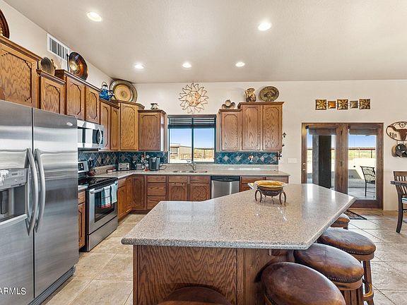 Welcome to horse country and everything you need! Arena with exceptional footing, cattle pen, return ally and a newer chute, 8 large covered stalls, 2 additional turnouts, tack room & hay storage right in a horse friendly neighborhood. Plenty of room for any size trailer or rig to pull through. Fantastic 3 bedroom/2 bathroom site built home with stainless steel appliances, open floor plan, and attached 2 car garage. Whether you're here full or part time, this property is 20 minutes to Wickenburg, 25 minutes to Surprise for all your entertainment and shopping needs. Come check out the QUALITY of this ranch & you'll want to make it your own. Schedule an appointment to see it today!
