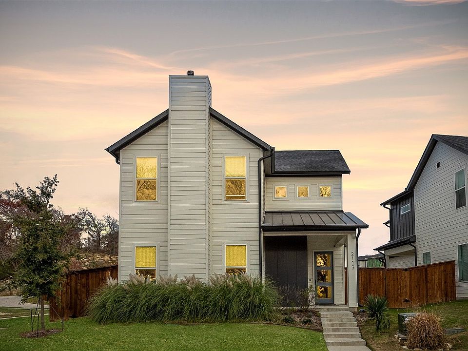Modern Farmhouse in Fort Worth’s River East District; sits on a bluff lot for really special views from every window! This is the best lot in the neighborhood, warm and welcoming style with an open floorplan and generous rooms throughout. Some of the quality features in the home: are tall ceilings, wood floors, quartz countertops, gas cooking, a tankless water heater, and low maintenance. The oversized primary suite has room for a sitting area, a dream bath, great walk-in closet, and yes, a lovely view of trees from the many windows. Very spacious secondary bedrooms with great closets. The attached garage is entered from the rear where you also have immediate access to HOA walking paths. There is a planned community garden space and a centralized greenspace. Truly a neighborly place to live. Downtown is less than 10 minutes with easy access to freeways as well. Great home, great neighborhood, and a great location. See private remarks for HOA info!!